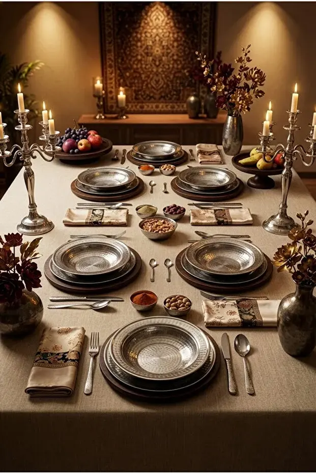 Yunusoğlu Home 12 Parça Otantik Dövme Metal Sunum Takımı: Sofralarınızda Saray Zarafeti