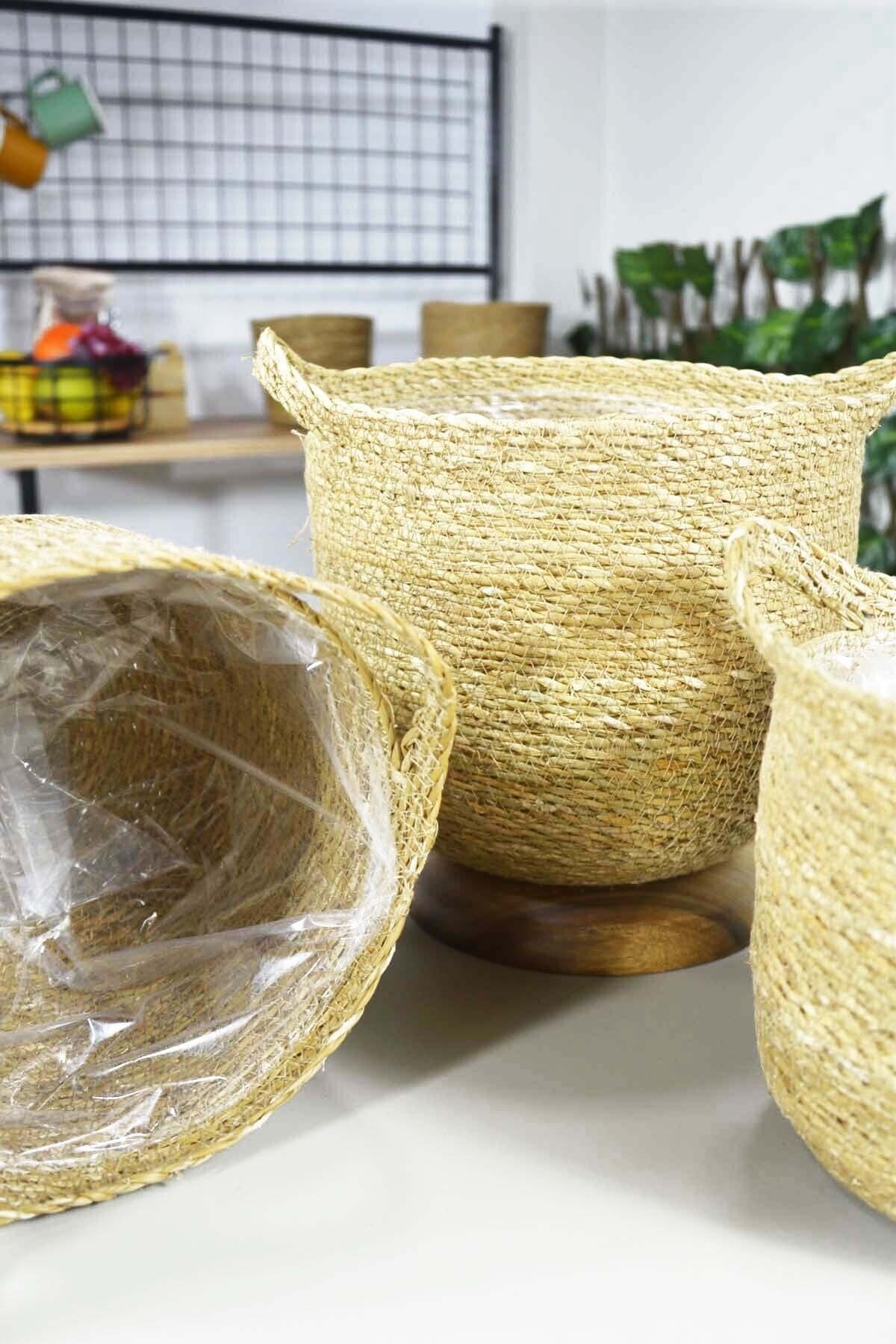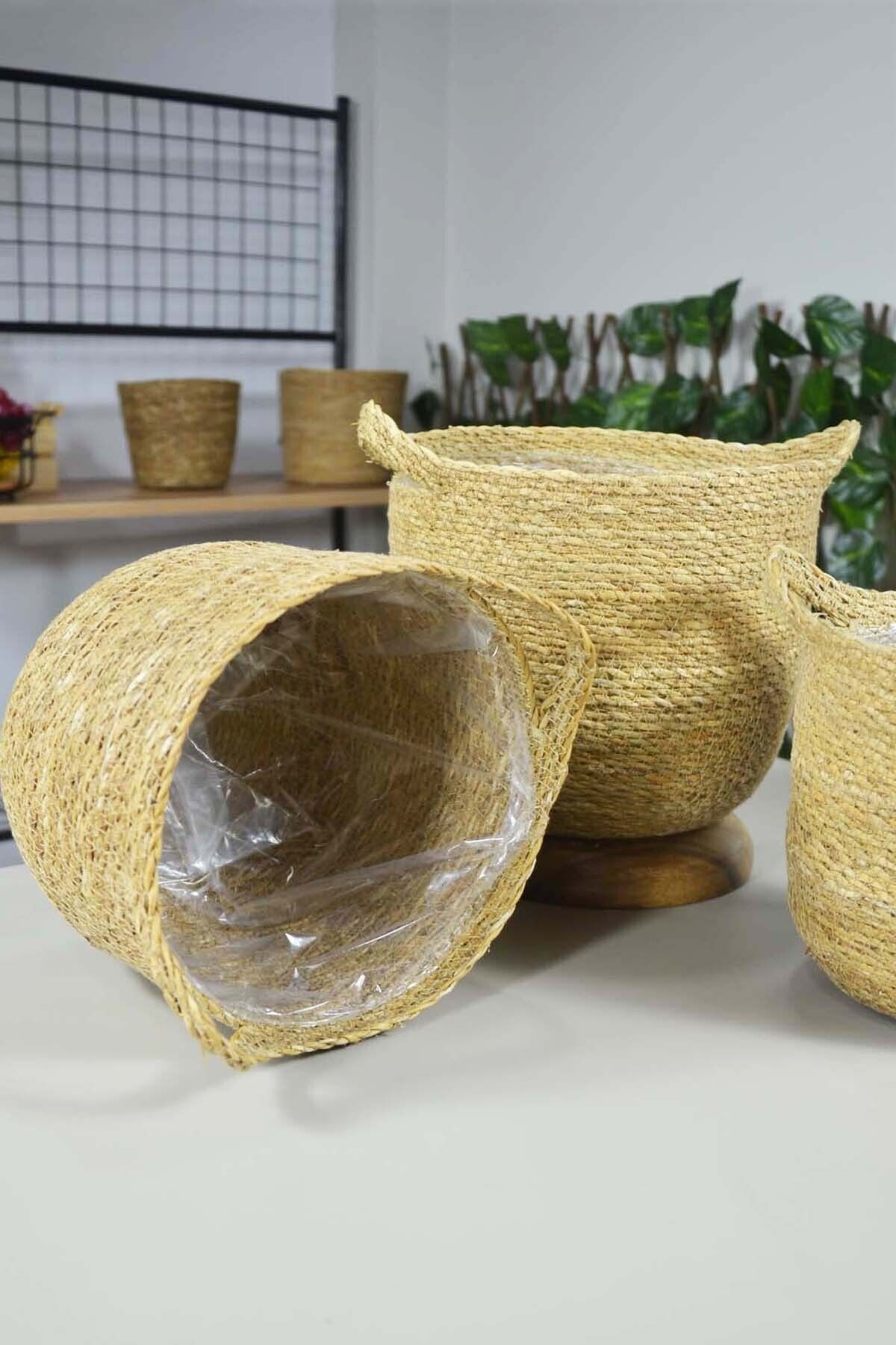 - Doğal hasır malzemesiyle üretilmiş, dayanıklı ve uzun ömürlü kullanım sunar.; - Bej rengi ile modern dekorasyon tarzınıza kolayca uyum sağlar ve mekanınıza sıcak bir dokunuş katar.; - Krem tonlarındaki renk seçeneği, evinizin her köşesine zarif bir görünüm kazandırırken, temizliği de oldukça pratiktir.; - 5 cm yüksekliğindeki kompakt tasarımı sayesinde az yer kaplayarak alan tasarrufu sağlar.; - Modern stil sahibi bu saksılık seti, hem iç hem de dış mekanlarda estetik bir tamamlayıcı olarak işlev görür.; Doğal hasır malzemesi ile üretilmiş, dayanıklı ve estetik bir tasarıma sahip saksılık; Üçlü set halinde sunulan bu saksılar, bahçe ve balkon dekorasyonunuza şıklık katar; Hasır yapısı sayesinde bitkilerinizi doğal bir ortamda yetiştirmenize olanak tanır ve hava sirkülasyonunu artırır; Poşet haznesi ile bitkilerinizi kolayca taşıyabilir ve istediğiniz yere yerleştirebilirsiniz; Hasır saksıların doğal dokusu, her türlü iç ve dış mekan dekorasyonuyla uyum sağlar;