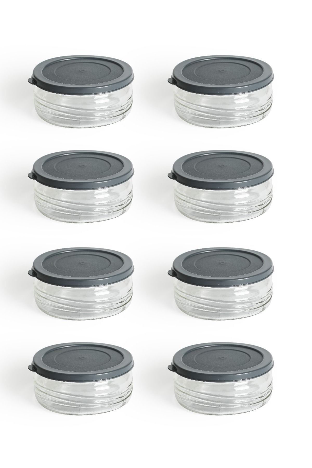 8'li Premium Kahvaltılık Seti 410 cc | Beyaz Plastik Kapaklı, Cam Saklama Kabı, Hava Geçirmez Gri