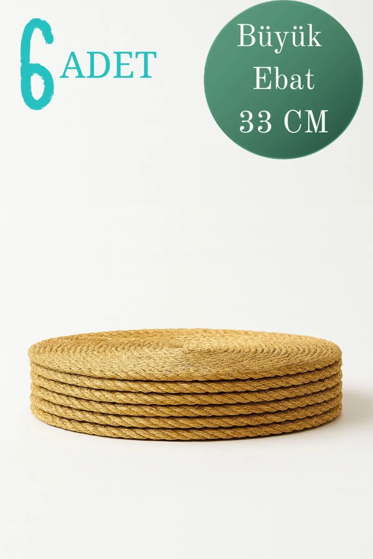 Hasır Jüt Supla 6'lı Set Amerikan Servis 33 Cm Çap Supla 6'lı