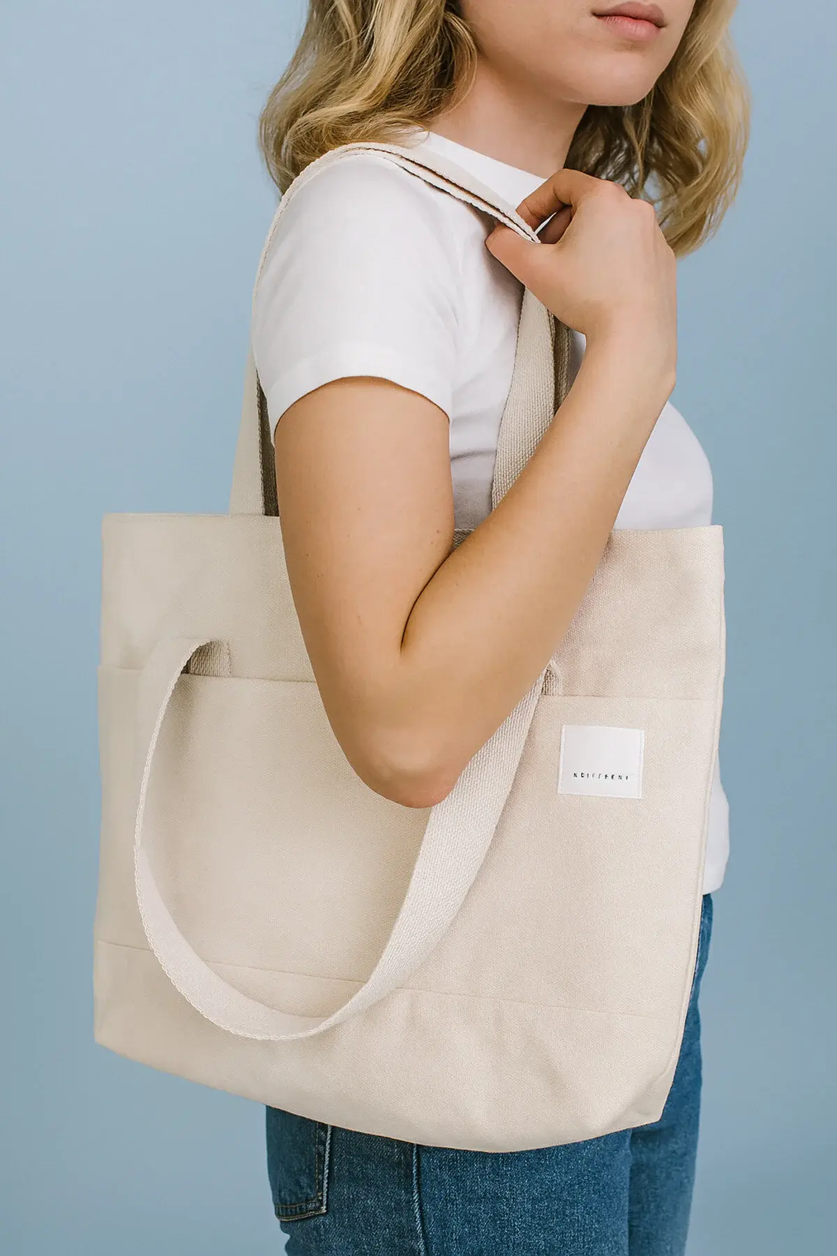 Şıklığı ve fonksiyonelliği bir arada sunan Kadın Krem El, Omuz ve Plaj Çantası ile tanışın. Organik kanvas materyalden üretilmiş olup, hem dayanıklı hem de hafiftir. Krem rengi ve sade tasarımı sayesinde her kombine uyum sağlar ve gündüzden geceye her kullanımda size eşlik eder. Unisex tasarımıyla kadın ve erkek kullanıcılara hitap eden bu çanta, makinede yıkanabilir özelliğiyle pratik bir temizlik imkanı sunar.