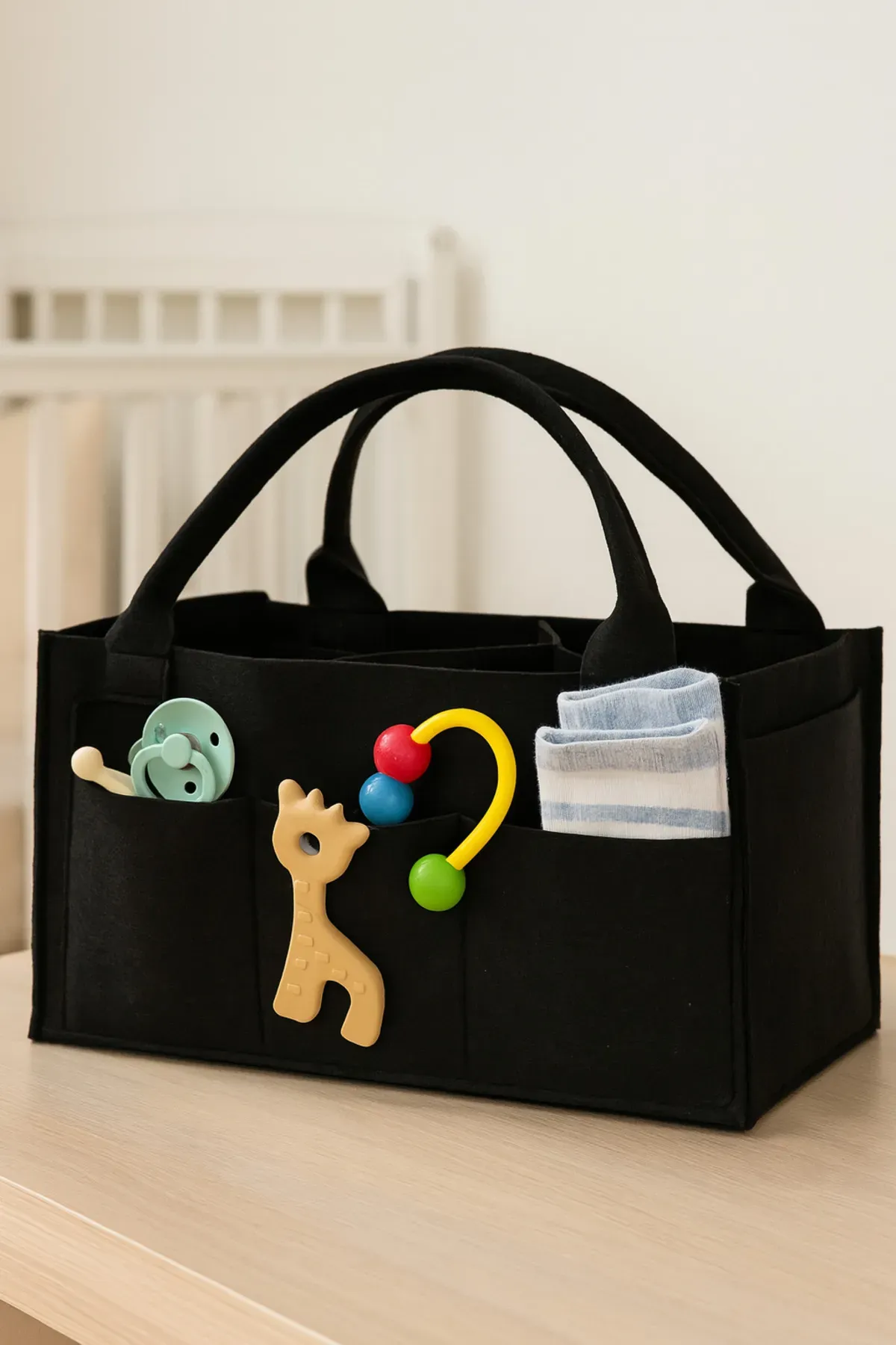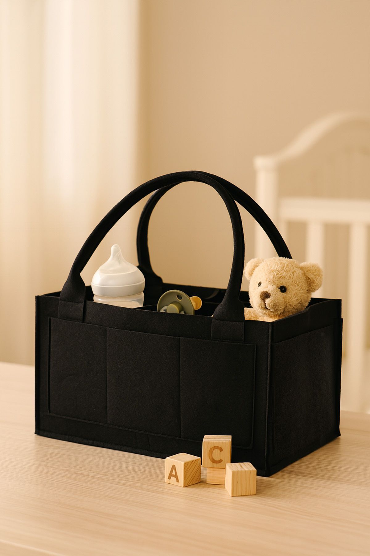 Keçe Anne Bebek Bakım Çantası Çok Amaçlı Organizer Siyah
