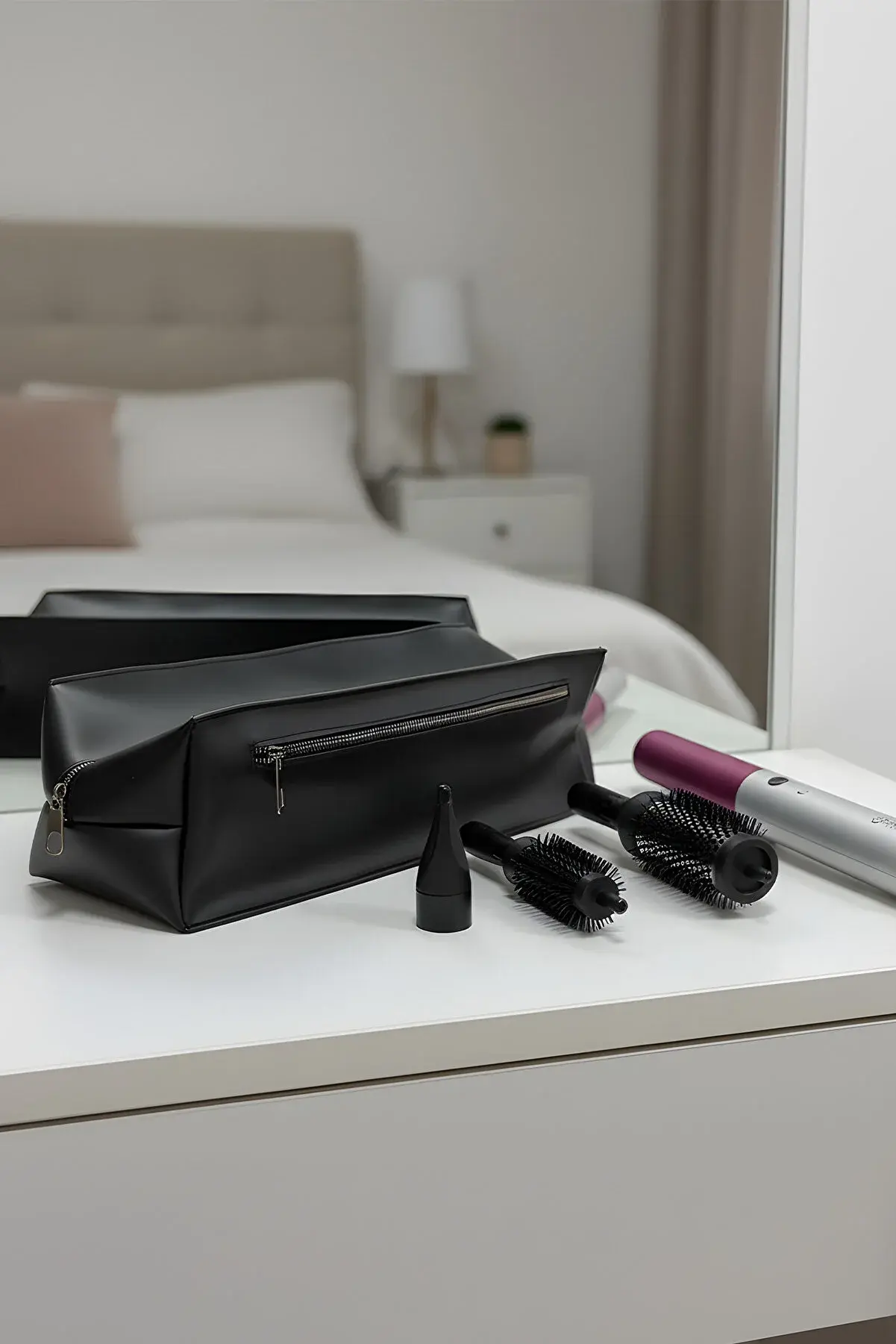 Siyah Deri Düz Desen Airwrap ve Tüm Saç Şekillendiricileriniz için XL Boy Çanta
