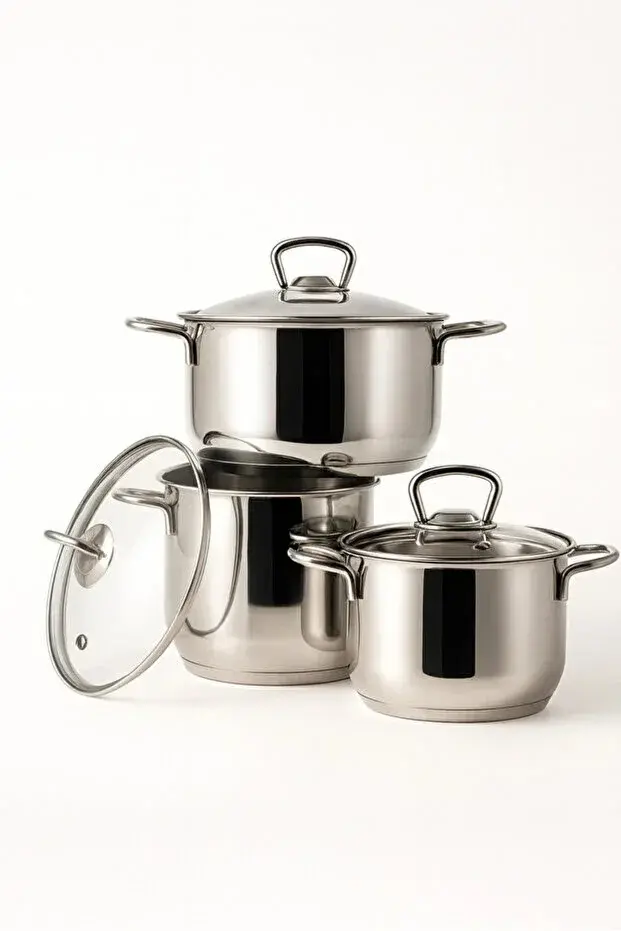 304 kalite paslanmaz çelik güveç tencere seti, şıklığı ve dayanıklılığı mutfağınıza getiriyor! Isıyı eşit dağıtan tabanı sayesinde yemekleriniz tam kıvamında pişer.; Cam kapaklarıyla pişirme sürecini kolayca takip edebilir, ergonomik kulpları sayesinde güvenli kullanım sağlayabilirsiniz.; Set İçeriği: - 14 cm / 1,20 L - 16 cm / 1,60 L - 18 cm / 2,20 L Öne Çıkan Özellikler: - 304 kalite paslanmaz çelik gövde – uzun ömürlü kullanım - Isıya dayanıklı temperli cam kapak - Ocak uyumu: Gazlı, elektrikli, seramik - Şık parlak yüzey – Kolay temizlenebilir - Dik model – dolap içi ve raf kullanımı için ideal Günlük yemeklerinizden özel tariflerinize kadar her kullanımda maksimum performans sunar.; Yunusoğlu kalitesiyle mutfağınızda fark yaratın.;